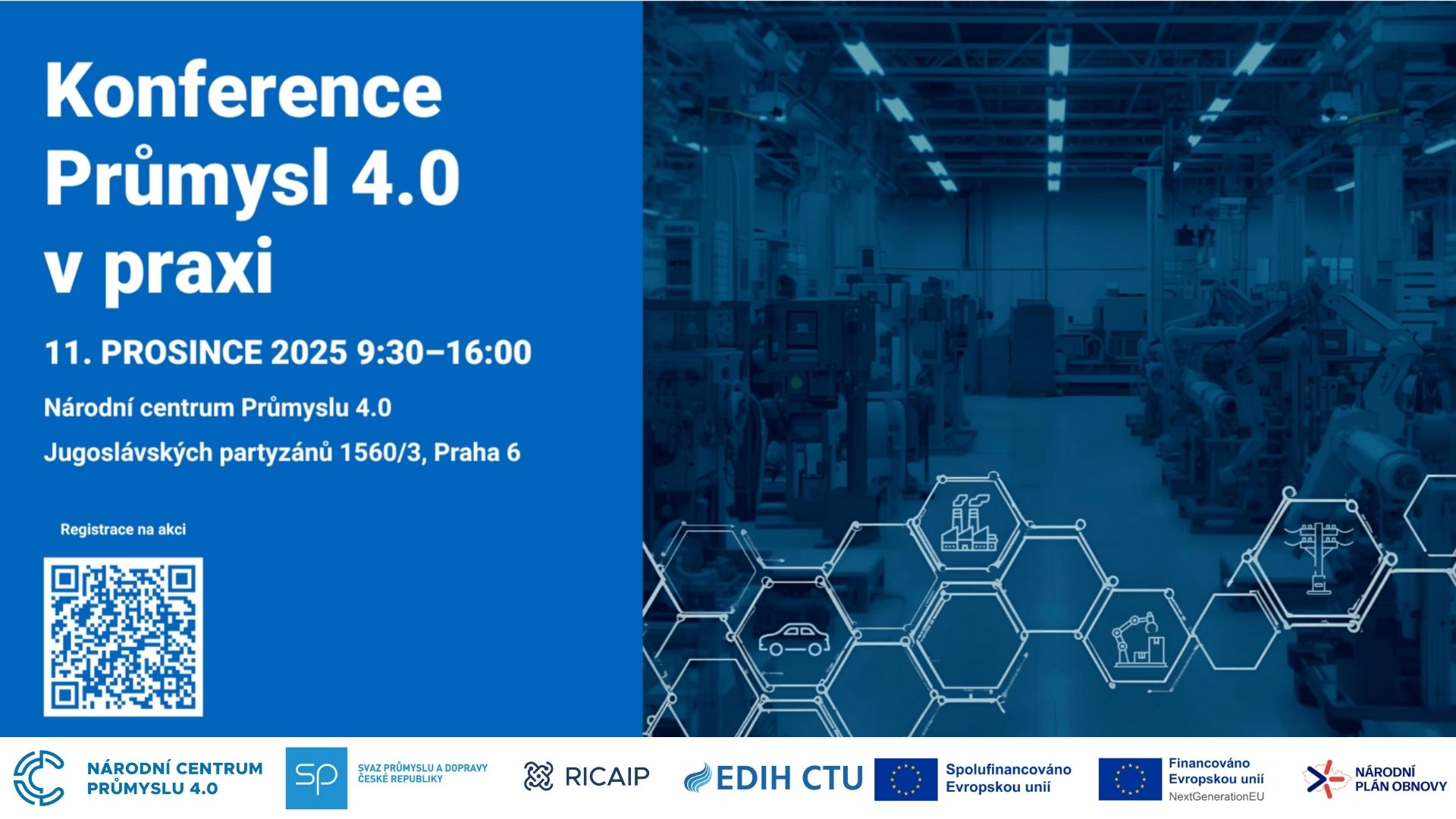 Společně s našimi partnery si Vás dovolujeme pozvat na další ročník konference Průmysl 4.0 v praxi 2025. Akci organizačně zajišťuje Národní centrum Průmyslu 4.0 ve spolupráci s konsorciálním partnerem EDIH CTU - Svazem průmyslu a dopravy ČR. Mezi další spoluorganizátory je také dlouhodobý partner EDIH CTU - RICAIP Testbed Prague. Účast na akci je zdarma…